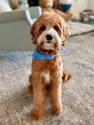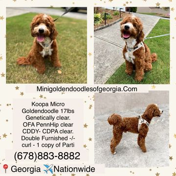 Yoshi is a 24lbs Mini Goldendoodle. He is very calm, a born with a docile personality and he’s never interested in being the alpha. Besides the good looks, Yoshi has the best temperament. Health Tested and Genetically Cleared! Double Furnished -/- Curls. Carries the Rufus gene. .Cddy-Ivvd Cleared.